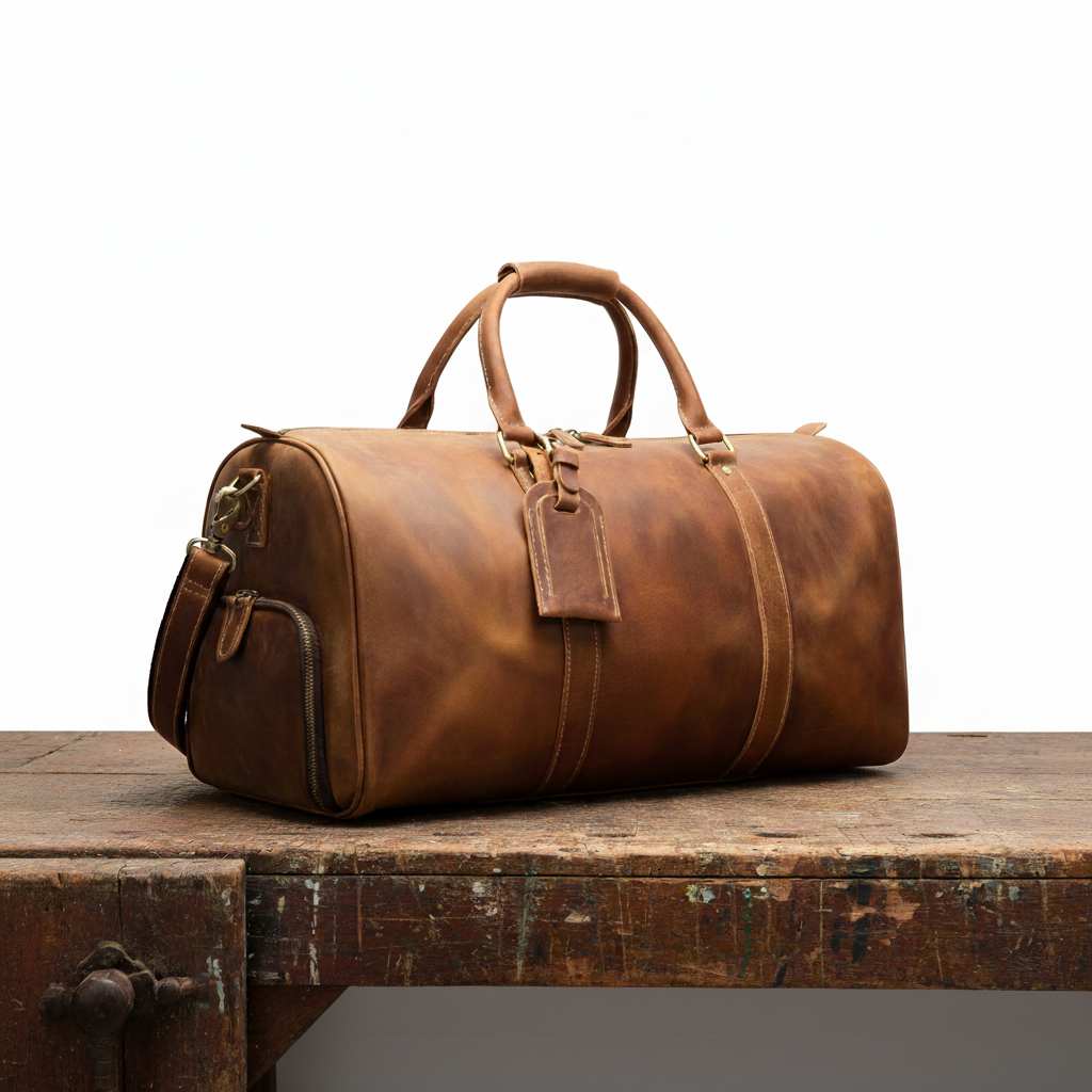 Speziell für den modernen Mann entworfen, bietet diese Tasche eine großzügige, zylindrische Form mit Platz für Kleidung, Ausrüstung oder Arbeitsutensilien. Zwei Ledertragegriffe und ein abnehmbarer Schulterriemen sorgen für flexible Tragemöglichkeiten, während stabile Nähte und verstärkte Reißverschlüsse für langfristige Zuverlässigkeit stehen.
