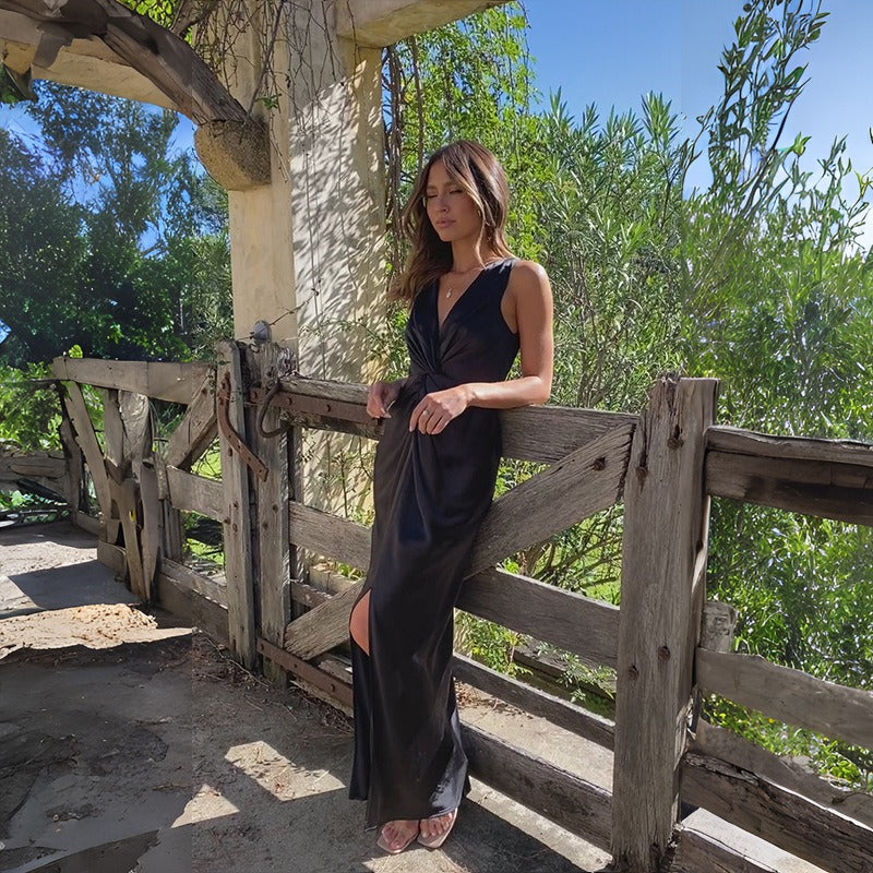 Ziehe alle Blicke auf dich mit dem Kleid Elaine – einem faszinierenden, ärmellosen Kleid mit offenem Rücken, das entworfen wurde, um dich hervorzuheben. Dieses glamouröse Kleidungsstück verkörpert Selbstbewusstsein und Eleganz und umhüllt dich mit einer stilvollen Silhouette. Ob bei einer Gala, Hochzeit oder einem besonderen Abend, mit dem Kleid Elaine glänzt du mühelos die ganze Nacht hindurch.