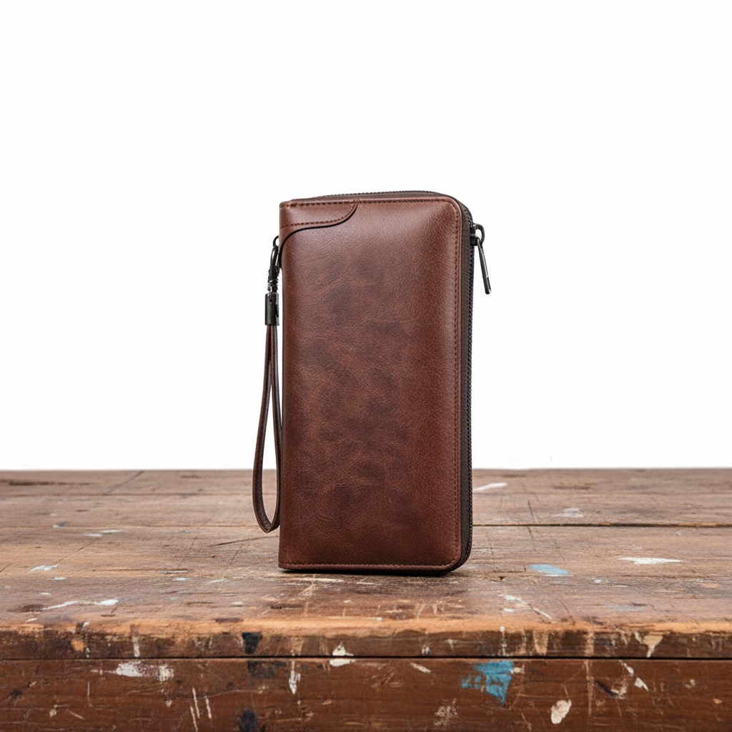 Die Holden Zip Clutch habe ich mit viel Sorgfalt entworfen, weil eine Geldbörse für mich nicht nur praktisch, sondern auch zuverlässig und schön sein sollte. Das hochwertige Leder fühlt sich angenehm an und entwickelt mit der Zeit Charakter. Der Reißverschluss hält alles sicher beisammen, und innen ist genügend Platz für Karten, Scheine und die kleinen Dinge, die man täglich braucht.
