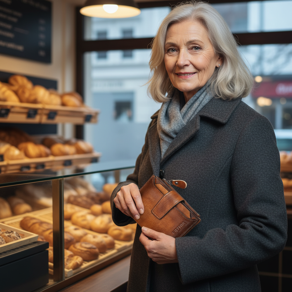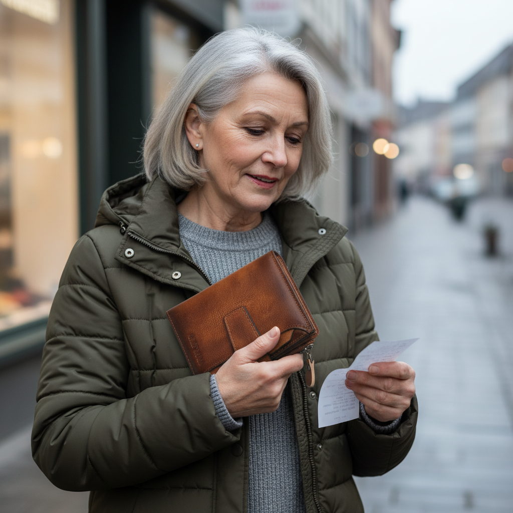 Innen finden Sie ein Sichtfach für den Ausweis, mehrere Kartenfächer, ein Scheinfach und ein kleines Münzfach mit Reißverschluss – alles übersichtlich und gut greifbar. Durch die dreifache Faltung bleibt es kompakt und passt bequem in jede Tasche. Ich wollte ein Portemonnaie schaffen, das zuverlässig, ordentlich und langlebig ist – ein treuer Begleiter für jeden Tag.