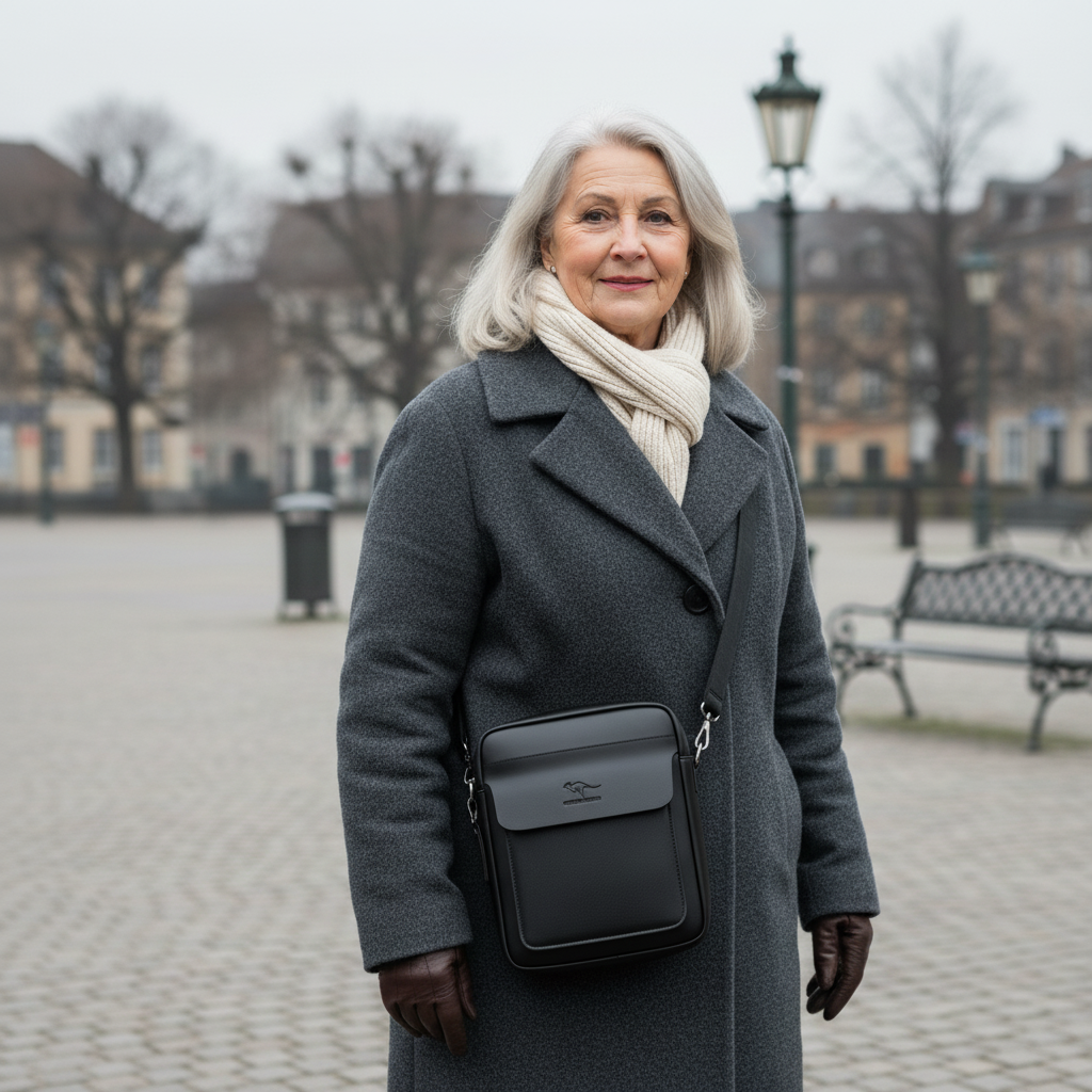 Diese praktische Umhängetasche habe ich so gestaltet, dass sie genügend Platz für die Dinge bietet, die man wirklich braucht – kleine Unterlagen, ein Tablet bis etwa 11 Zoll, das Handy oder das Portemonnaie. Trotz ihrer kompakten Größe bleibt sie übersichtlich und leicht zu tragen.