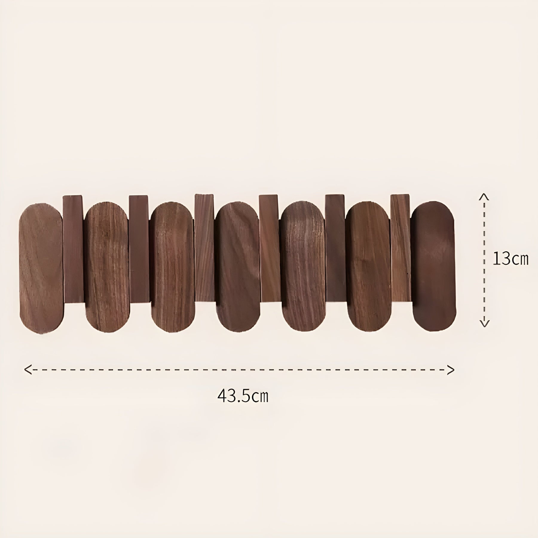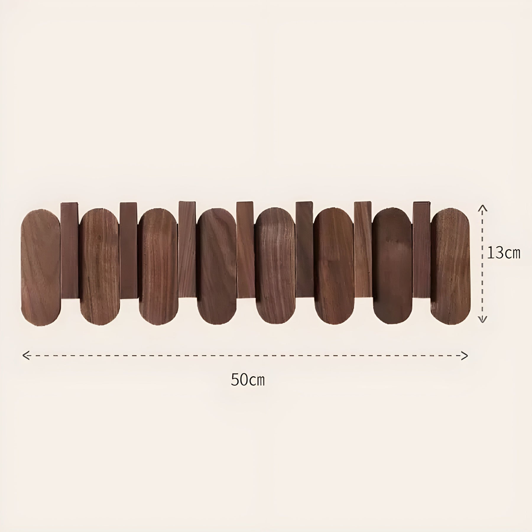 Das OakLine Rack miss und bietet Platz für 3-7 Haken mit einem Lochdurchmesser von 8,5 cm. Bitte beachten Sie, dass bei Produkten aus Naturholz Farb- und Maserungsabweichungen auftreten können, da es sich um ein organisches Material handelt.