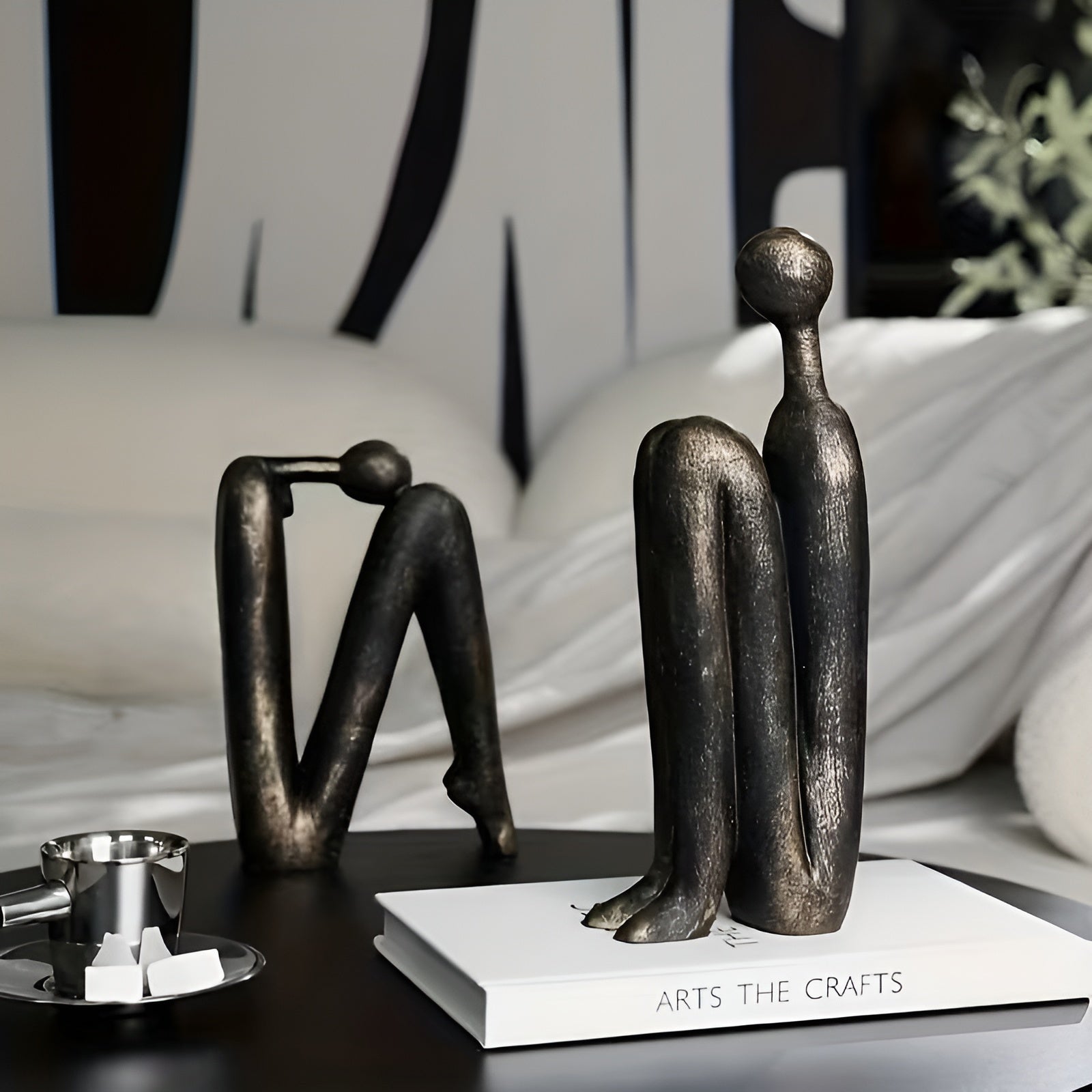2-teiliges Skulpturen-Set aus Kunstharz – Moderne Menschenfiguren | Dekorativ für Regal & Wohnzimmer