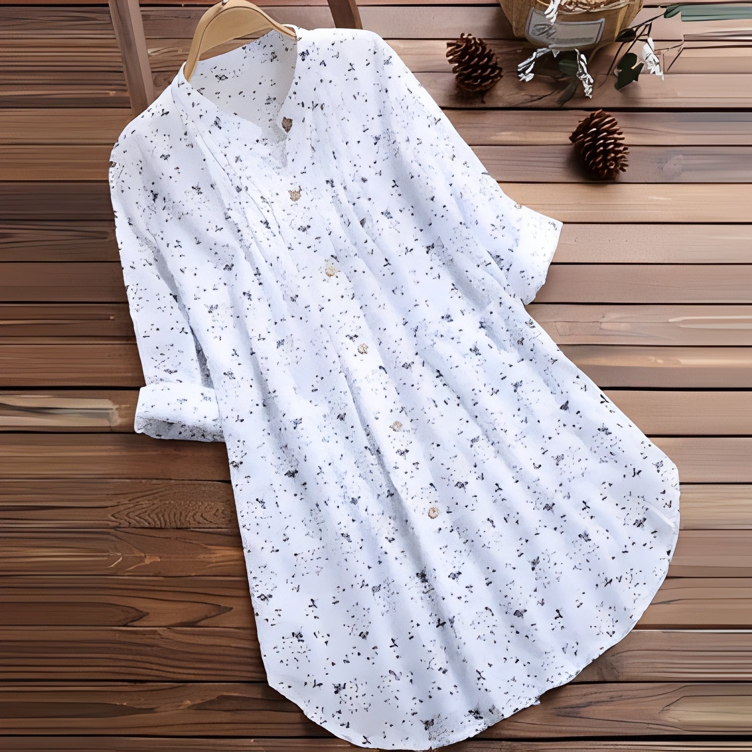 Das Blumenkleid Amie besticht durch seinen weiten Schnitt und einen fließenden Stoff, der sanft die Silhouette umschmeichelt. Das verspielte Blumenmuster verleiht eine frische, feminine Note. Angenehm zu tragen und ideal für warme Tage. Perfekt für Alltag, Urlaub oder entspannte Treffen.