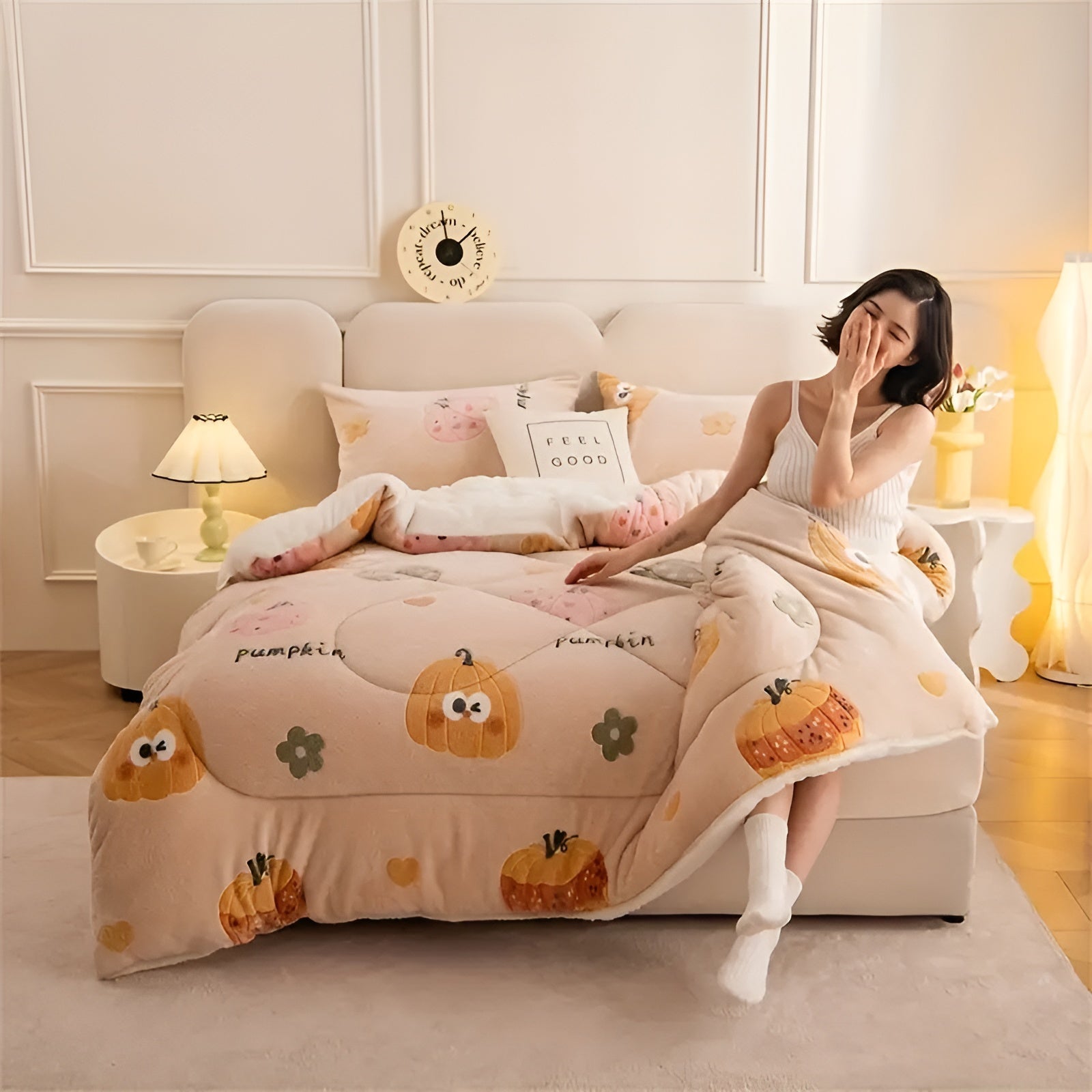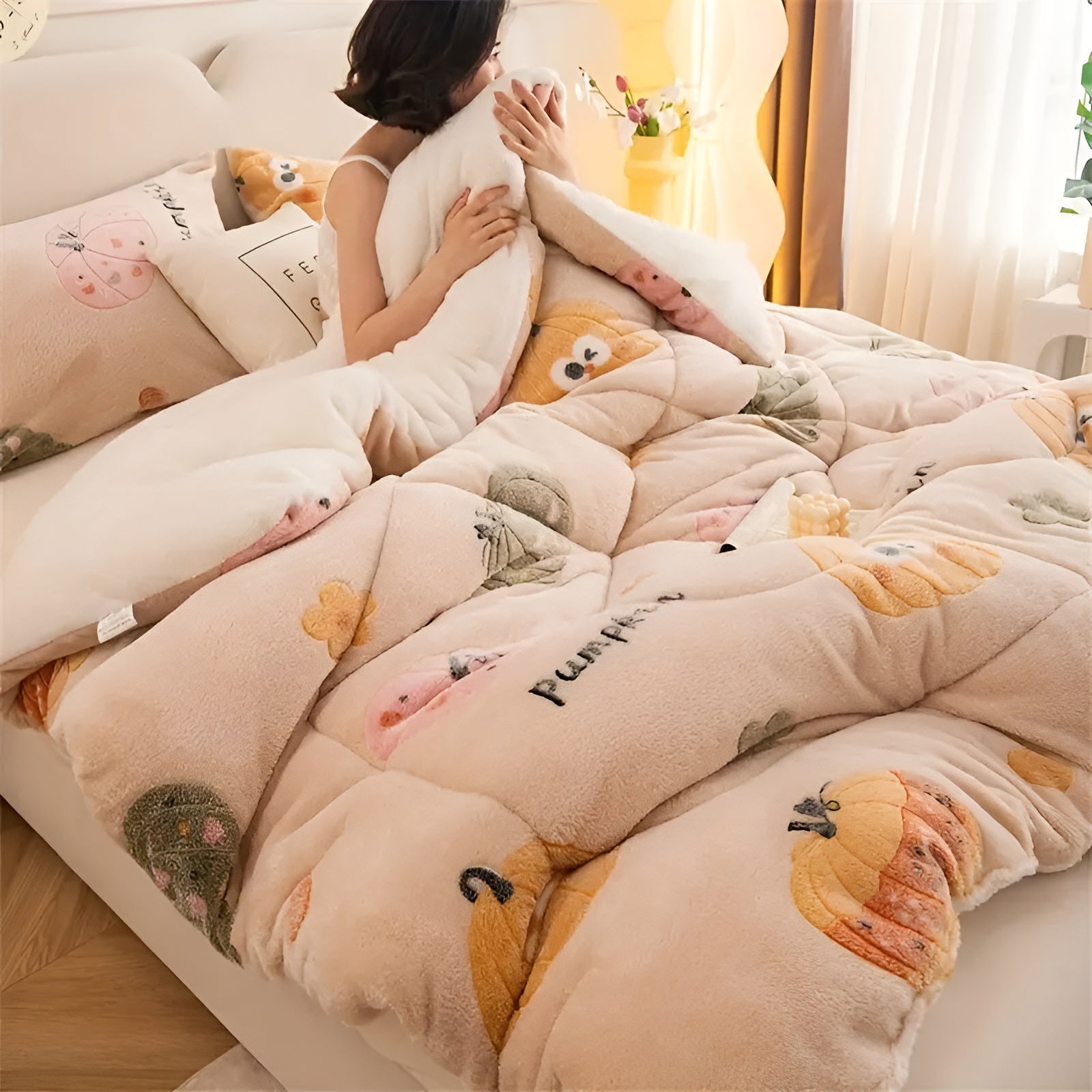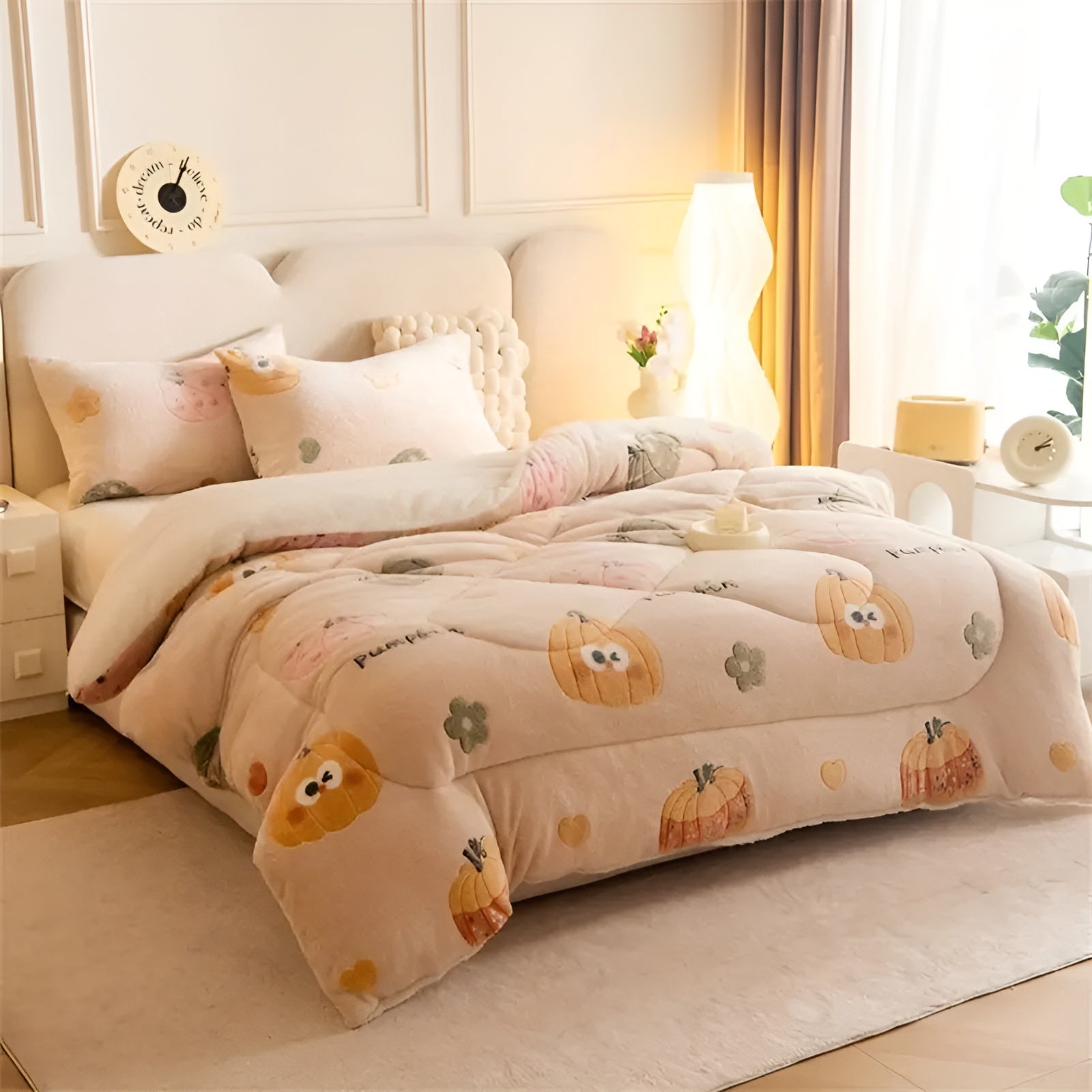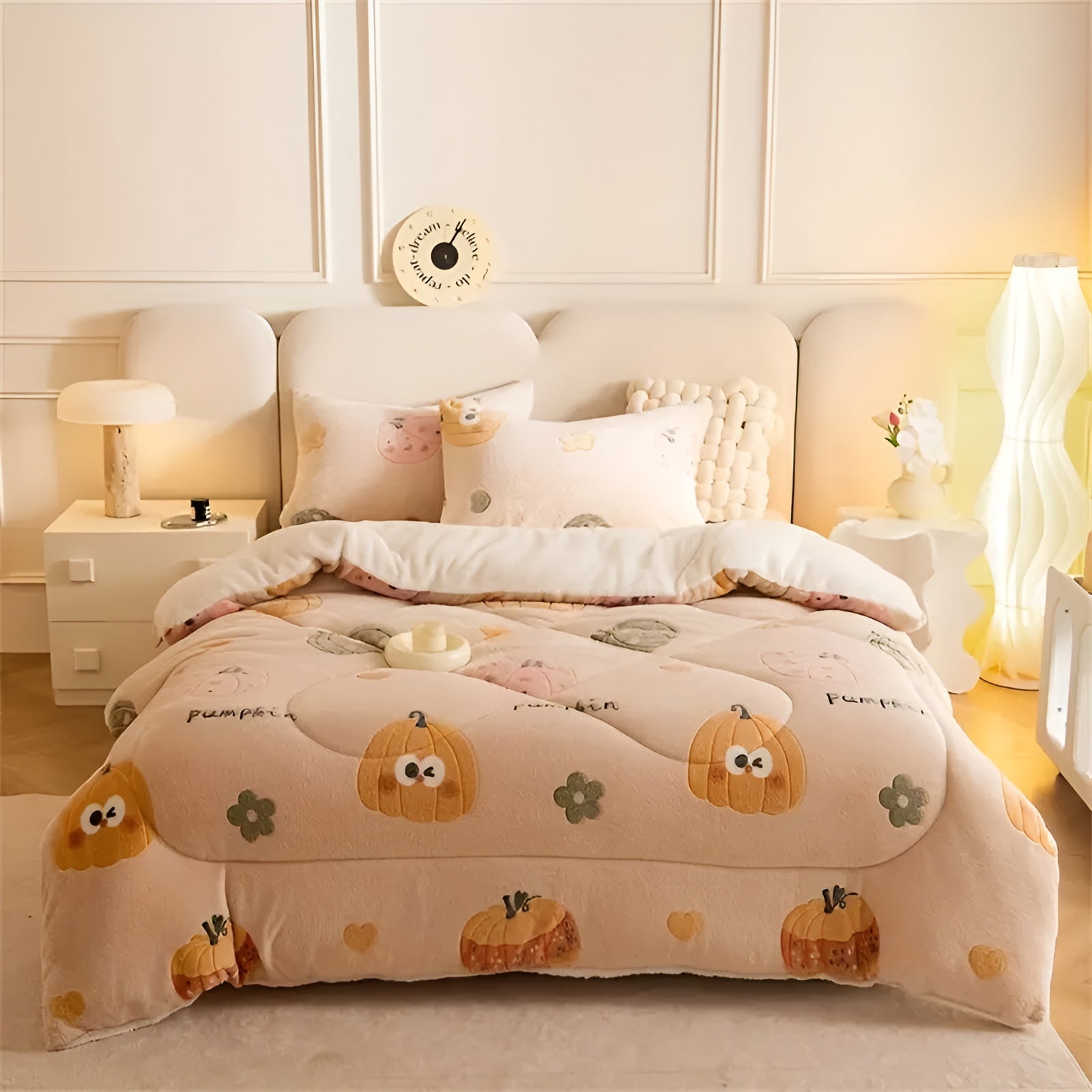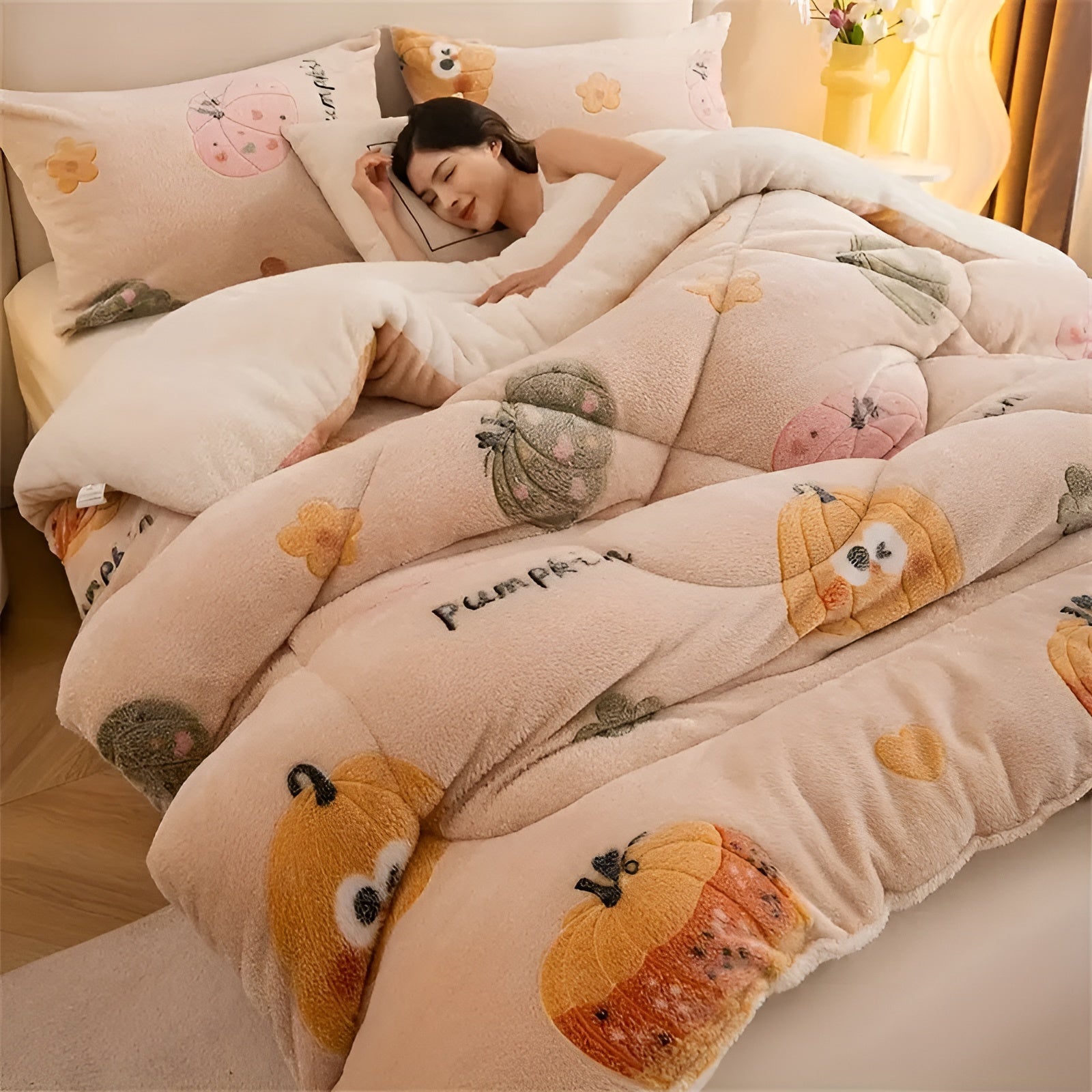 Samtdecke mit Kürbis- und Schneeflockenmotiv – Weich & Warm | Stilvolle Wohndecke für Herbst & Winter