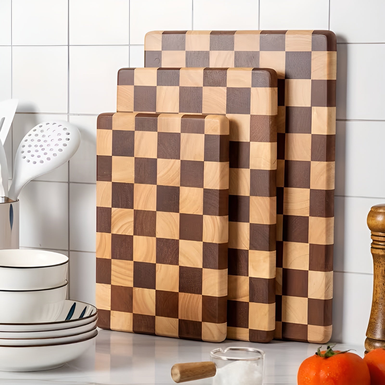 Schachbrett-Schneidebrett aus Holz – Dekorativ & Robust | Ideal zum Schneiden und Servieren