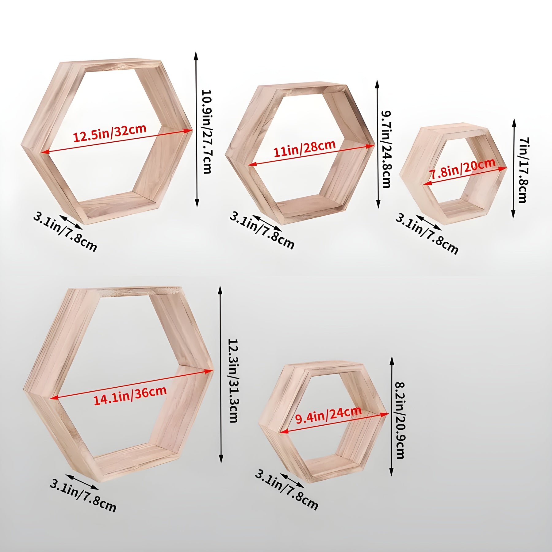 Wandregale aus Holz im 5er-Set – Sechseckig & Dekorativ | Perfekt für Wohnräume