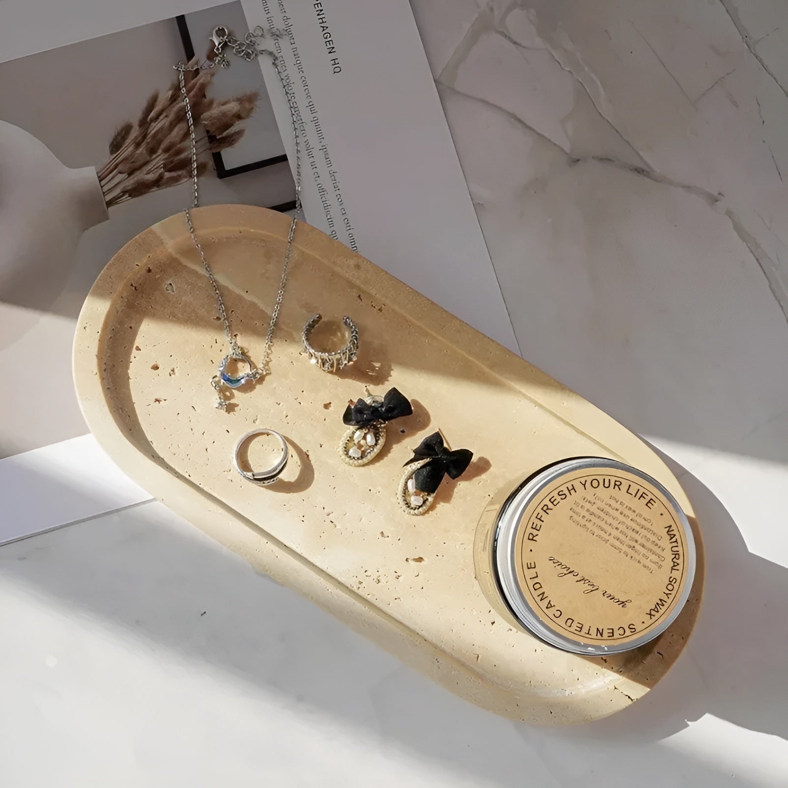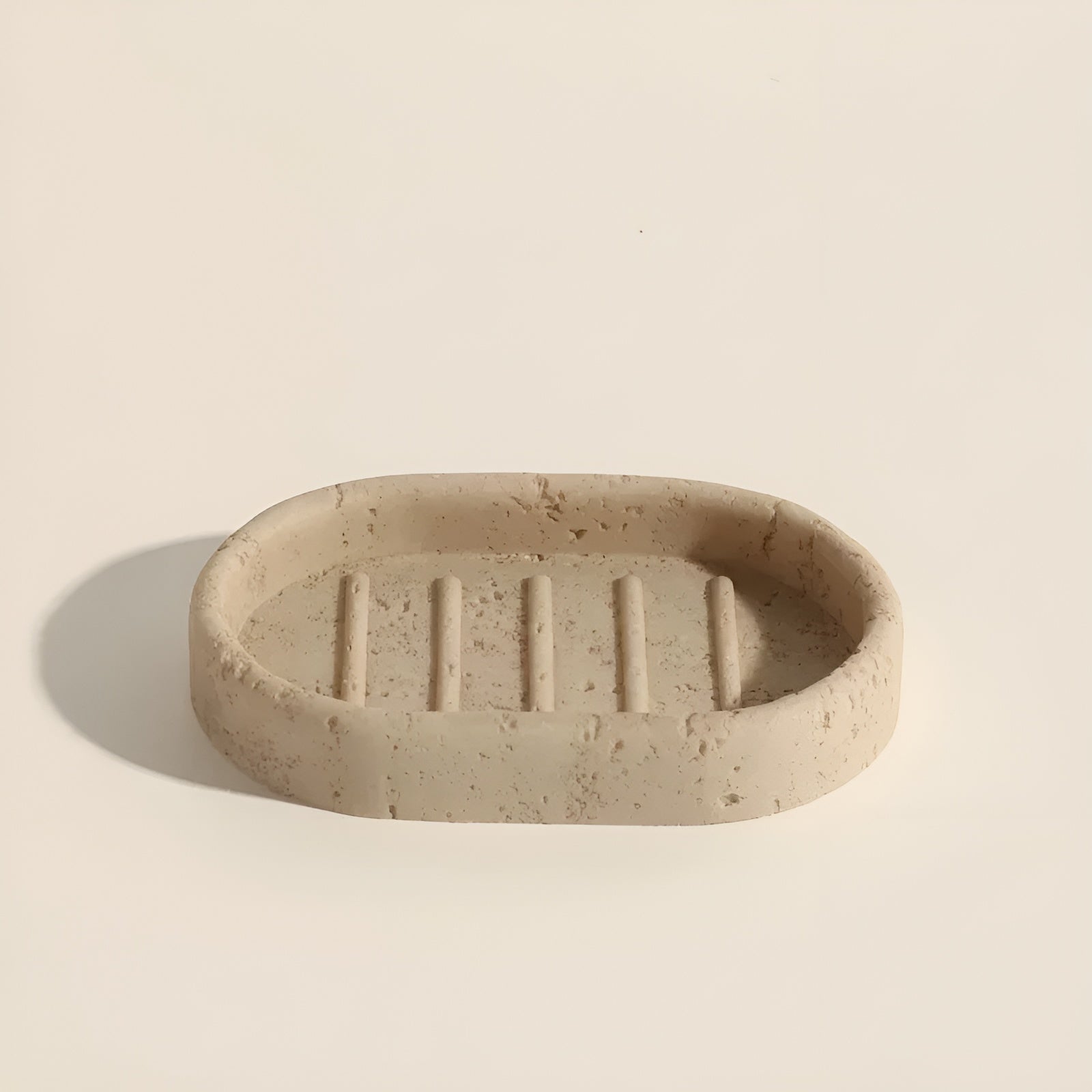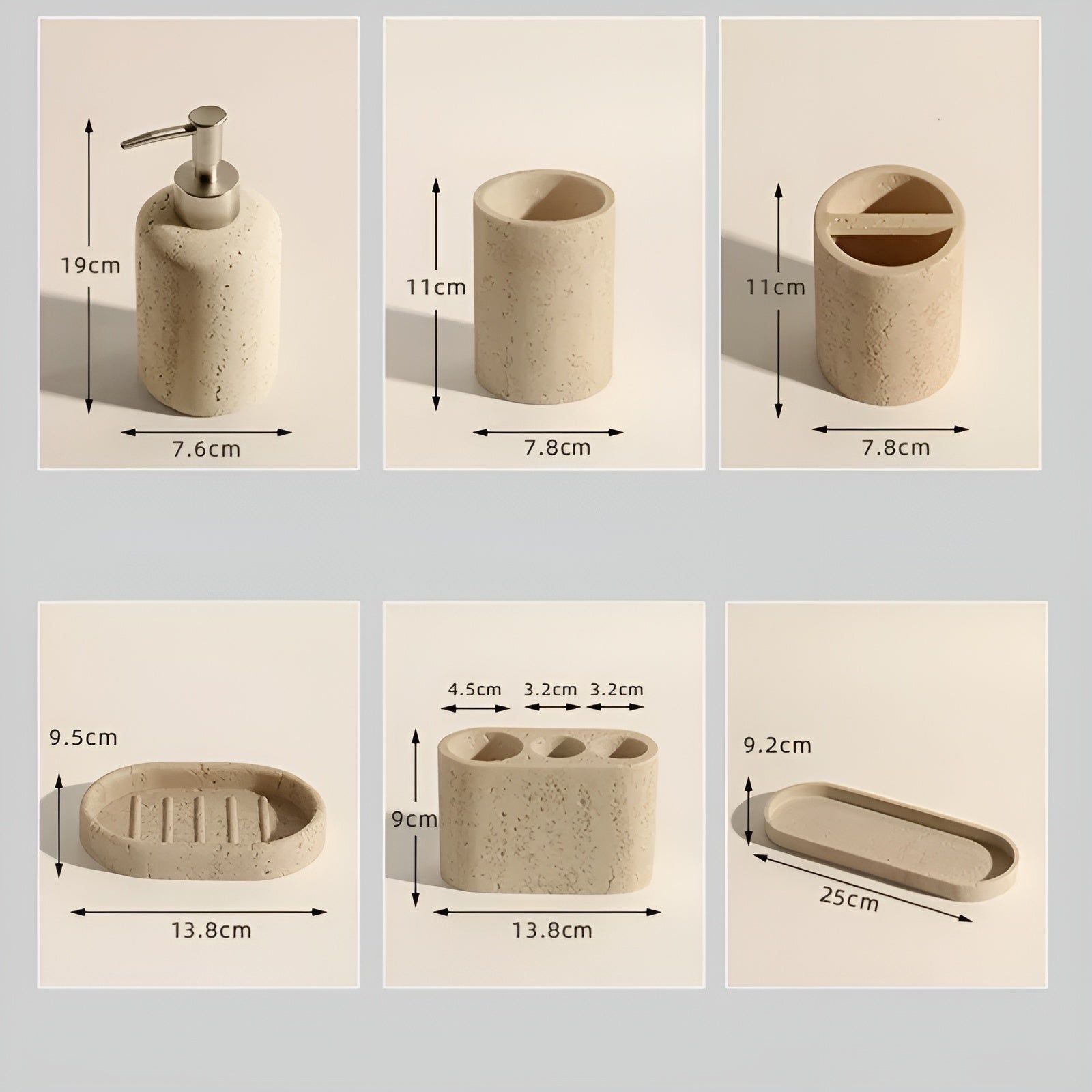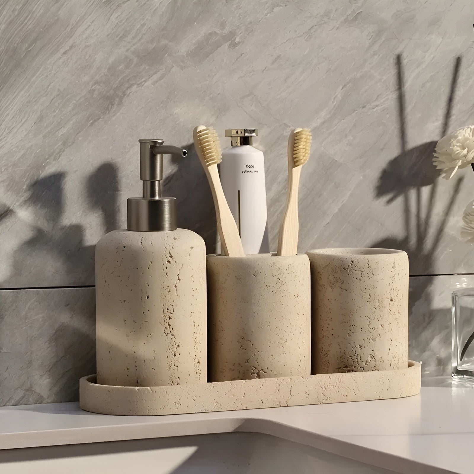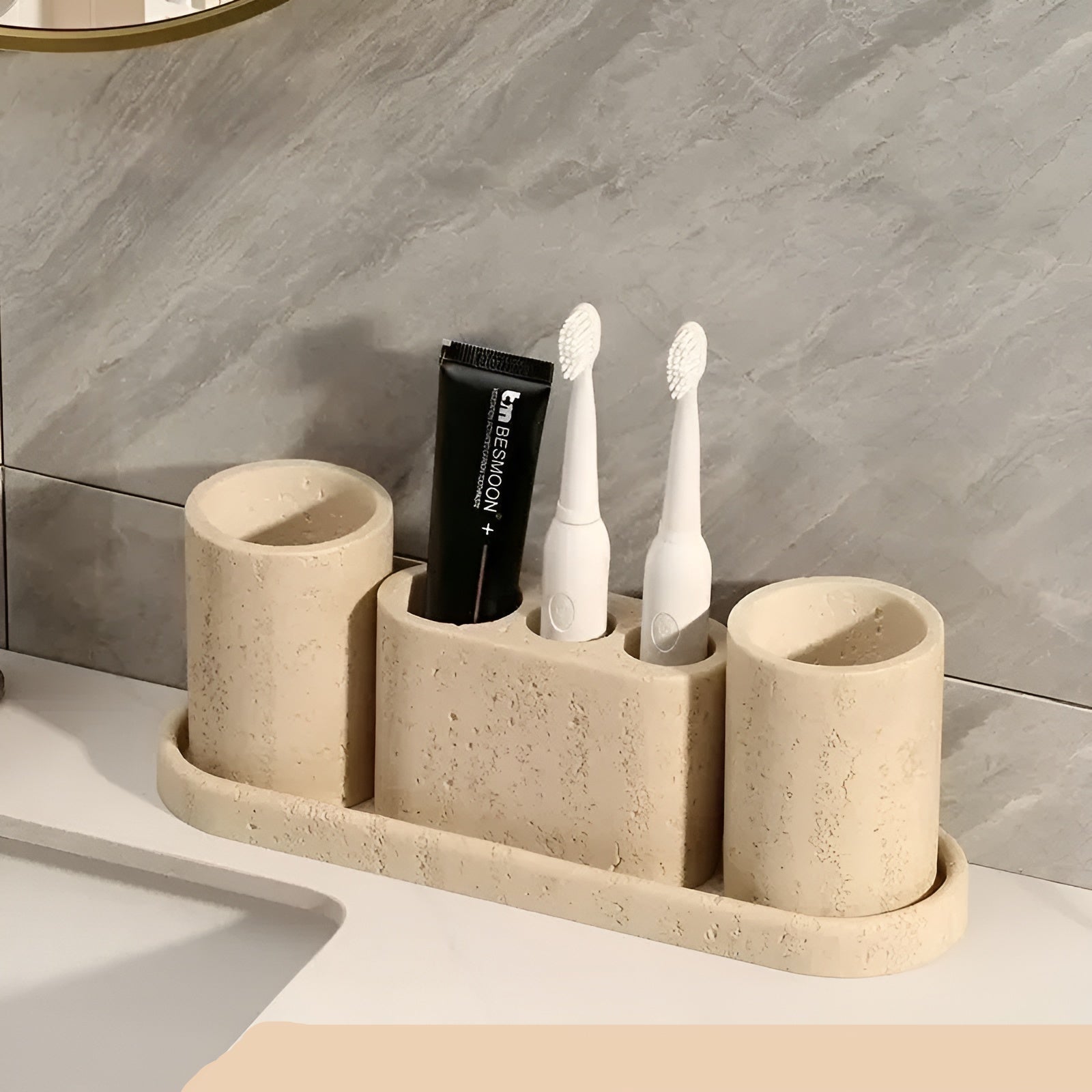 Zahnbürstenhalter aus Naturstein – mit Seifenspender und Ablage | Elegante Badaccessoires aus Travertin